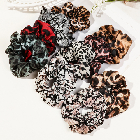 ห่วงคาดผมผ้าซาตินหางม้าแบบเรียบง่ายสำหรับผู้หญิงยางรัดผมยืดหยุ่นรูปเสือดาวขนาดใหญ่