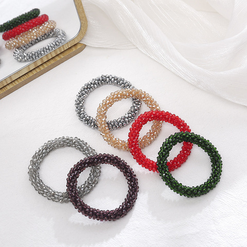 ห่วงรัดผมประดับพลอยเทียมแบบเรียบง่ายแฟชั่นใหม่ที่มัดผมลูกปัดคริสตัลยืดหยุ่นทำด้วยมือ